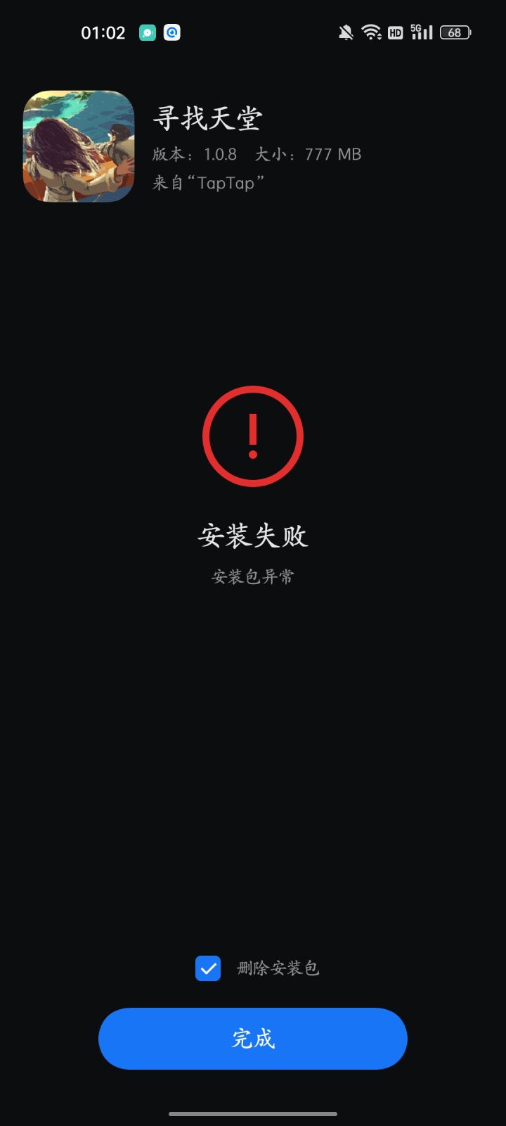 已下载完成,但是显示安装包异常,开发者你有什么头绪吗?真的很想玩上这个游戏,期待好久了却是这样的结果