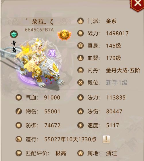 中洲龙虎榜,神装神宠谁霸榜?今天的主人公是【月落星河】゛朵拉。ζ,她玩的职业不仅是最经典的法金,而且还是法金中的新兴职业——法刀金,是既能拉刀还能输出的多功能职业! 她的账号创建时间为2020年3月7日,短短4年多的时间,就成为了全服道行榜百强选手,足以见得其实力非同小可。 这位来自浙江的美女大佬,究竟拥有哪些神装神宠呢?一起往下鉴赏一下吧~#问道手游