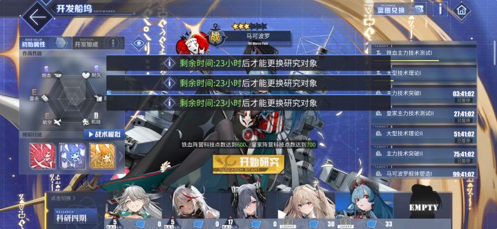 使用最高方案快速研发券后,仍然提示需要23小时后才能切换研究,……我都研究完了,船都出来了!还要再等23小时之后才能切换研究?