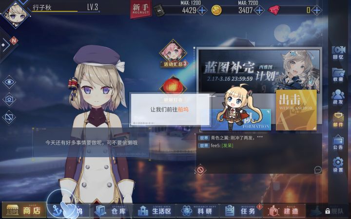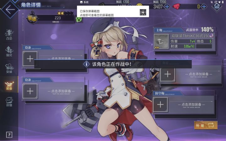 新手教程让我给舰娘装装备,但是系统提示舰娘出战不能装备然后什么都点不了,请问还有救吗?