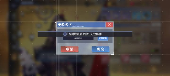 誓约改名的时候提示操作无效,有谁知道是怎么回事嘛?