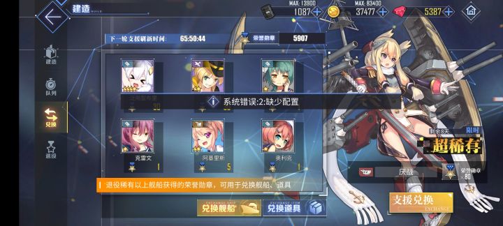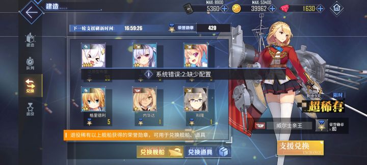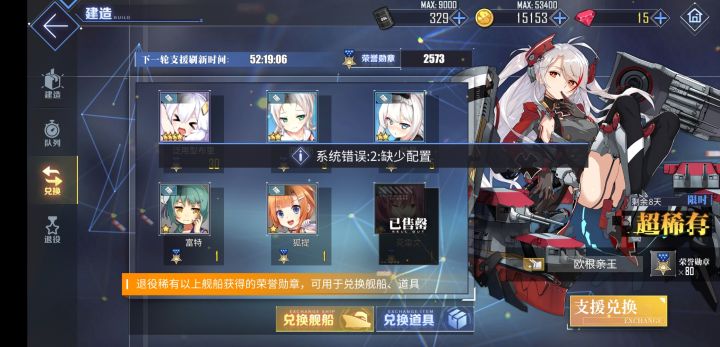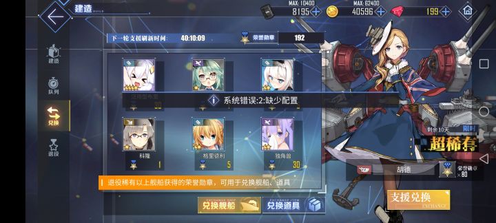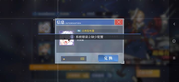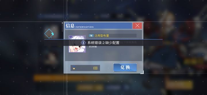 建造——兑换功能bug,选择兑换,提示“系统错误2缺少配置”请尽快修复!已经严重影响玩家兑换了,错过了两轮!退出游戏重进n次都没用!进行系统修复,也没用!