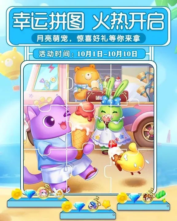 Shout out to TapTap的喵粉们,各位久等啦~喵星星一出马,福利活动绝对少不了!钻石不够用?那就来搭乘本喵的“钻石特快”吧!上车时一无所有也不怕下车时保证你盆满钵满有了这份消除世界10月活动指南保证喵粉一颗钻石也别少赚还等什么?快上车!————幸运拼图————活动时间:10月1日-10月10日本喵可是消除界的拼图达人!怎么?敢不敢来比比看?金币、钻石、月亮宠