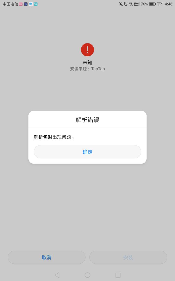 之前的解析包错误问题,我们终于把他修复了,,,对各位造成不便,这个真是抱歉。。。。各位可以前去安装游玩,已经安装过的不需要再重新安装,再次跪谢。。。。。如果还有出现解析包错误,麻烦重启下机子,吐血中,,,