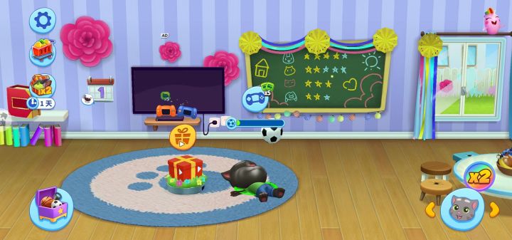 《汤姆猫总动员》作为“会说话的汤姆猫家族”系列的最新作品,在多个方面进行了大幅的提升,让众多新老玩家都可以找到属于自己的虚拟宠物。1、在游戏里,有汤姆猫、安吉拉、汉克狗、金杰猫、狗狗本和贝卡兔六只宠物!我们需要照顾到它们,刚进去游戏是只有汤姆猫一只的,过了一会儿,安吉拉也出来了,还会出来一个汉克狗,后面的都是慢慢获得的!2、游戏中,宠物想干什么会在头顶有提示!然后它们想玩什么就让它们玩就行了!