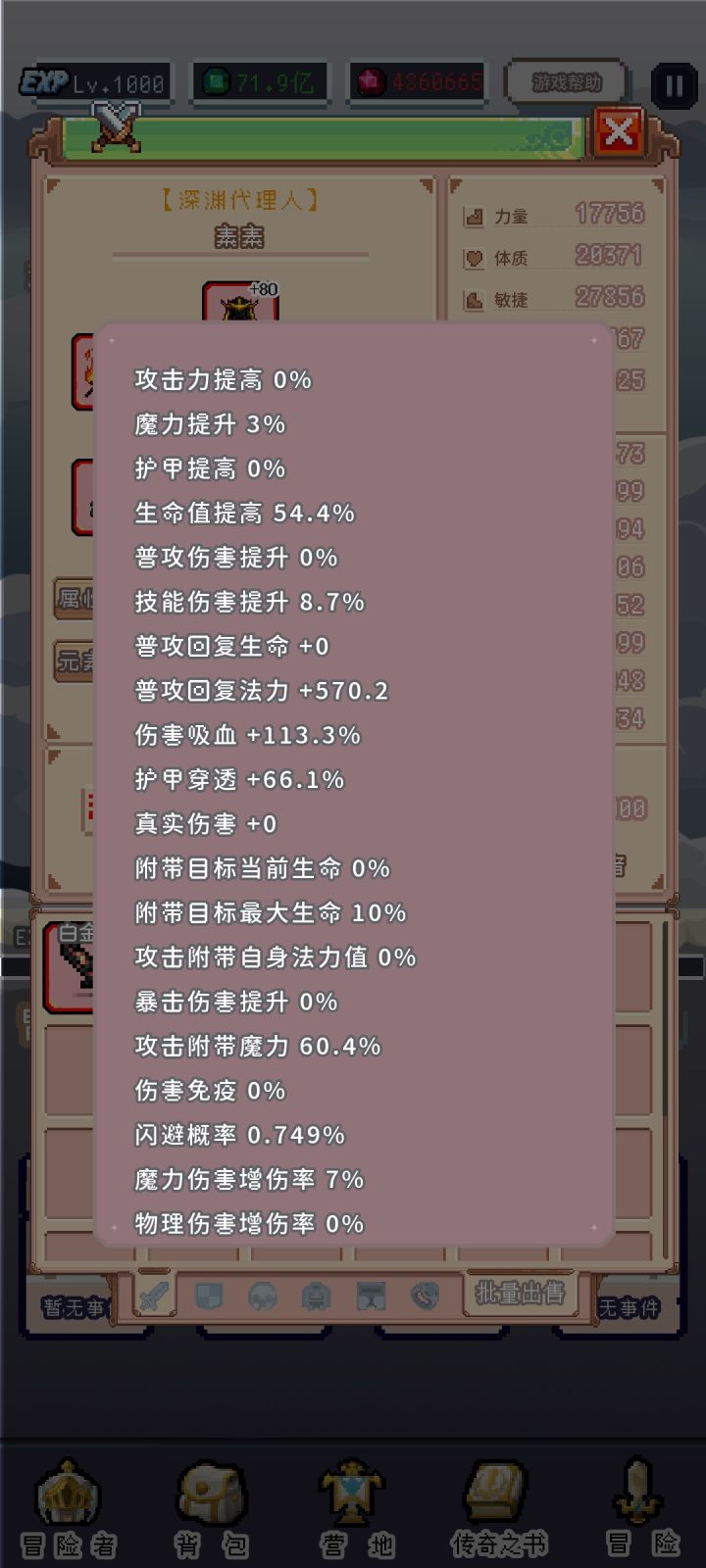 第一次写攻略,排版比较杂,凑活看看吧创建角色角色的选择个人推荐勇者和小红帽(我玩的这俩个)属性加点左边的5项属性是基础属性,在游戏中有许多方式提升,现在这20点基本没用,不用管。右边的5项是隐藏属性,只有创建角色的时候能提升,这5项里面下面3项是无用属性,锻造的话没有必要,造的装备能用就行,毕竟玩到了后期都是穿副本掉落的套装,所以全加幸运就完事了,可以飞快的刷事件还能提高掉落(虽然掉落好