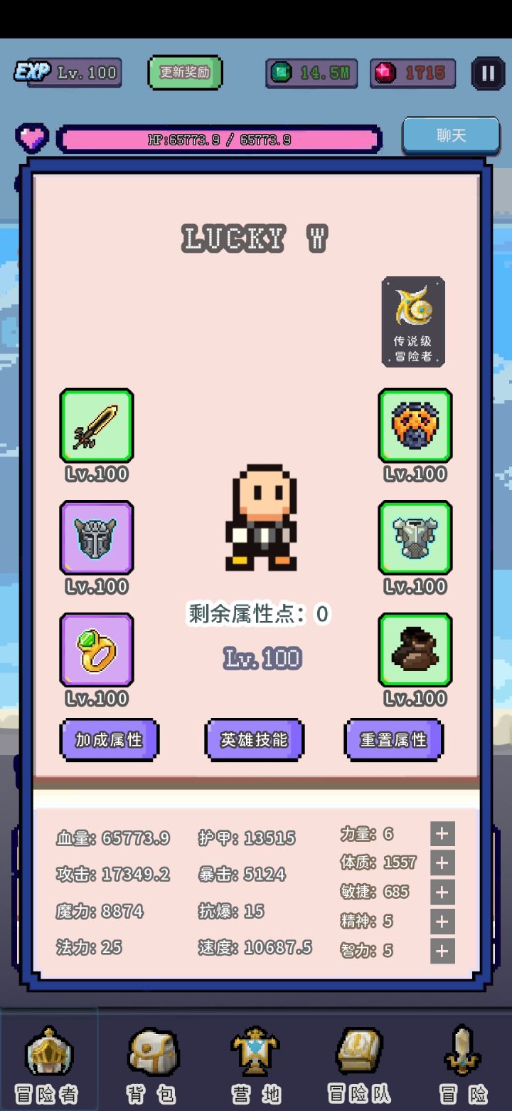 点击“冒险者”加上除0外任意属性点(可以不加完,但是要在升级前加上,不然容易损失属性点,蚊子再小也是肉嘛~);