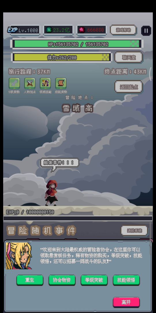 打开“属性加点”页面,点击最上方属于“冒险者”页面的“×”点击“冒险者协会”,点击“重生”;