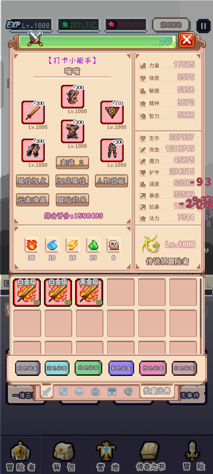 本人新手红帽一枚,目前深渊122万层,传奇书800层,敏捷36W,速度180万,其实论坛大佬很多都出过红帽的攻略,我就有点帮门弄斧了,我主要说几点新手期的东西。1.突破我个人认为突破在游戏里是前期比较容易获得属性的方式之一,所以前期我们尽量1000级突破。有人建议200突破,30次突破下来+卡属性,跟1000级突破差了69600点属性点。前期萌新传奇书等级都比较低,我感觉69