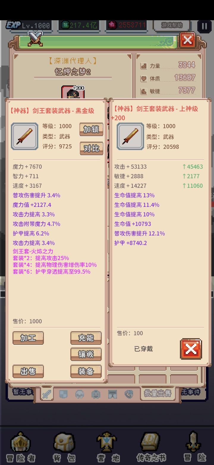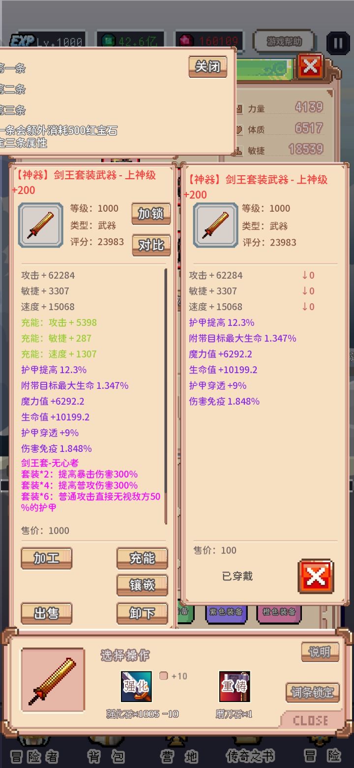 三个小问题:1、成就标注错误2、对比里面看不到已经穿着的装备的套装,而且套装生不生效也不知道,希望能和其他游戏一样已经生效的条目换个颜色标注3、广告还是经常会加载不了(虽然比之前好多了)