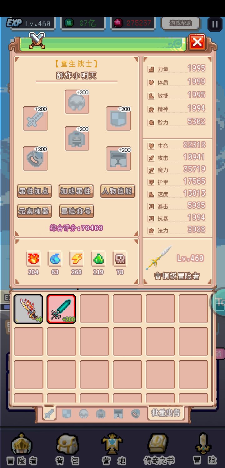 建议在1.2.0版本做好祭坛、花园、渔港、冒险队、冒险者协会中任意一个功能(小心头发)建议增强趣味性和逻辑性,以丰富玩家的游戏体验(同上)建议增加新BOSS(构思完成会发)建议增加云存档(可能很难,因为从手动挂机就看得出来了)建议删除“返回起点”(我觉得没什么用处)建议减少20s事件的秒数并提高每秒获取量,以便玩家节省时间(浓缩就是精华)建议修改回血和攻击时的数字UI,并在怪物血条上打