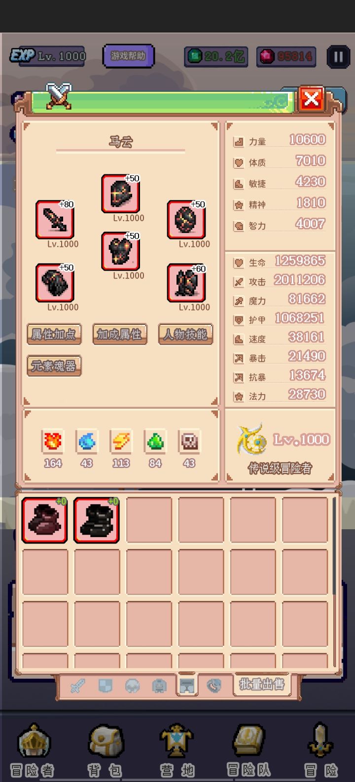 有个BUG:15W速度获取的经验 比14W速度少。(按照说明应该是15W之后的速度收益减少,而不是全部速度收益减少。) 另外游戏是个好游戏,给大佬点赞。大佬辛苦了。 前面两张是14W,后面两张是15W