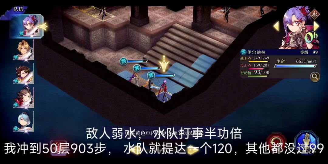 属性队打楼层事半功倍。 无重置这次冲到50层是903步,比上次1043快了不少,每次玩都有提高