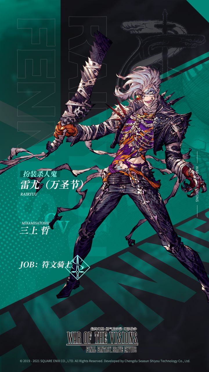 本周的节日限定兵员雷尤(万圣节)也带来了全新职业【符文骑士】想要体验新职业的冒险者们请不要错过本期卡池哦~角色简介阵营:芬尼斯稀有度:UR称号:扮装杀人鬼万圣节派对会场就是这里吗?哦,参加的家伙还真不少啊。那好,就去吓吓那些家伙好了。放心吧,我才不会手下留情呢,我要让那些家伙尝尝真正恐怖的滋味。技能简介极限技展示-------------------------------