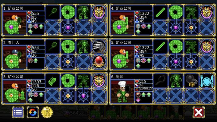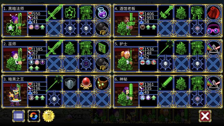 话不多说,先上队伍。这个队伍大致的构想就是靠镰刀秒杀普通怪,剩下一个先用护士回血,再用玻璃剑收割最后一个。5目标的层数(整万层)由于boss速度快,由暗黑之王先手收割boss。7目标的层数(河流、沼泽)由酒馆老板直接A掉。女猎人降低冷却以确保每次都能用上。所有人必须确保100%以上的状态抵抗。1号位必选暗黑之王。原始地界(2世界)双目标的偷袭必定会有一个点1号位,然后再点其他人。暗黑之王