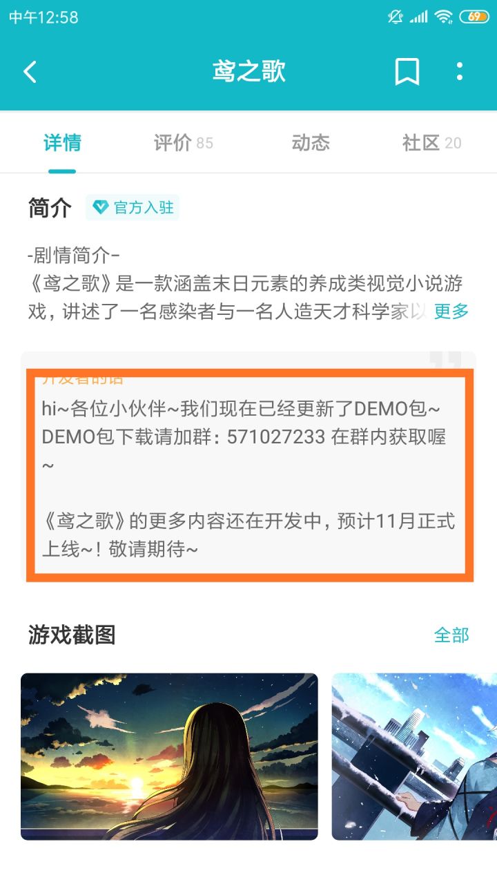 因为内测主要是在steam上测试的,所以taptap上面并没有发通知,没有找到的小伙伴可以看这里_(:3」∠❀)_首先在开发者的话里面有内测群号571027233回答问题(你是在哪里知道的鸢之歌)等待大约十分钟后管理同意进群点击右上角的“三”形符号进入文件下载第二个文件然后……就没有然后了~( ̄▽ ̄~)~PS:不要问我为什么发这种世人皆知的引导我才不会告诉你是因为没有地方氵了