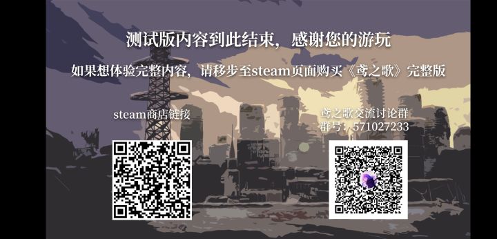 玩完了测试版,懒得下完整版总结一下游戏体验百合+末世挺不错的逃跑那个推荐先去商业街道,然后小心过去,然后再转到医院,最后河提那边直接冲心图那边的话建议不要动,除非你想凑死亡画面洗澡板块建议先去踩点,就是四处转转那个,然后就跟着顺序选游戏总体来说还是不错的,那种孤独的感觉。就是有个bug,人物语音有时候会断,按键感觉有点慢。