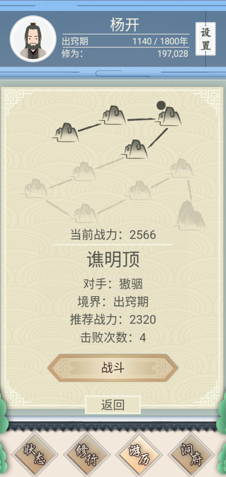 断断续续昨天天点了一天…因为测试版,所以还是挺期待后续的~总结一下吧,就是肝肝肝!前期靠经商,后期靠种树,再后期靠每日点…奇遇先不说,因为打不过,战力永远比自己高几倍。突发事件选项固定,只要记住就没事。7百多万的时候儿子传功差点要了老夫的命!幸好苟住了,后面太无聊了
