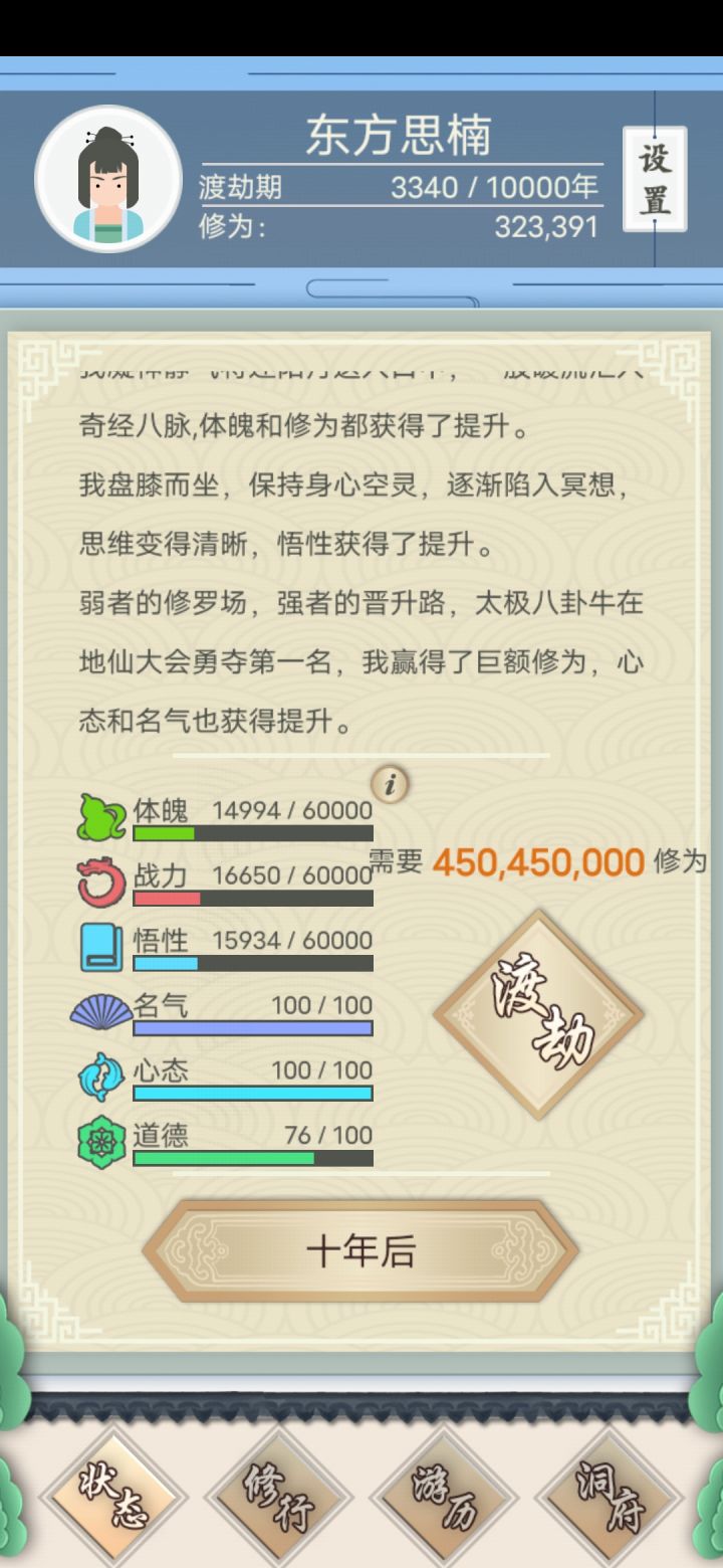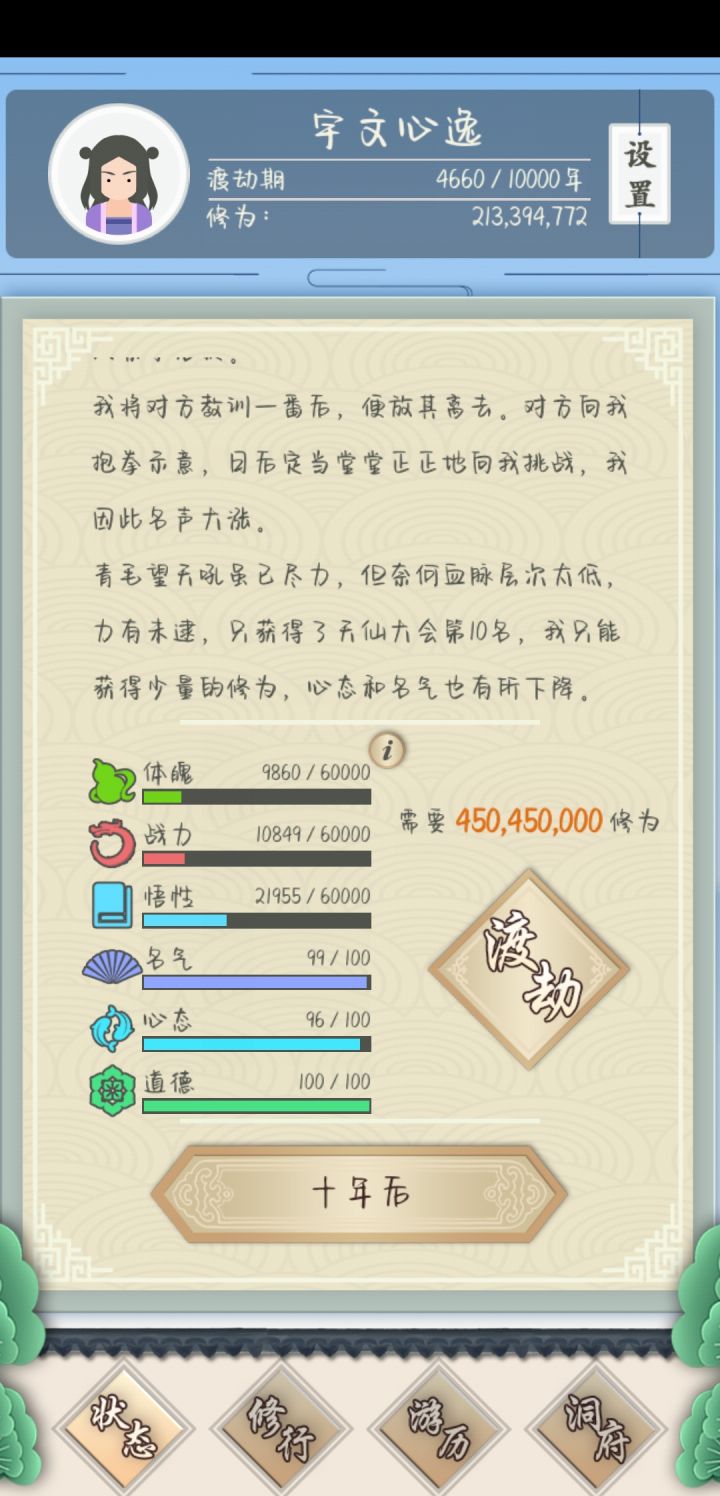 ①。通关并继承后,仙班(坟墓)就直接刷新了,没有一条记录。990的仙府继承证明通关,仙班刷新不能截图通关人物了。大好的装逼机会溜走了啊,淦(งᵒ̌皿ᵒ̌)ง⁼³₌₃。。。。②。还有还有大乘后,买新仙府后会有子嗣名额,这个时候,狂点“十年后”(大乘期无限生命不浪费哦!)就会无限刷子嗣(我最高刷了28个宝宝)。③。圣兽部分,神兽满级后,最高战力也打不到天仙级比赛,多次测试只能达到天仙第十名。应该是
