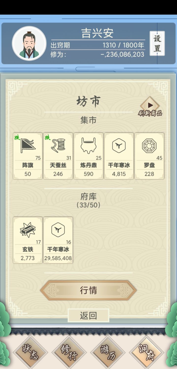 希望再更新更高等级的功法和神兽,神级、圣级功法、丹药和圣兽什么的,再多加点随机事件。ps:炼妖完全是个鸡肋。