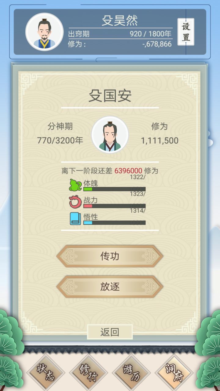 说我人物儿子大限将至,要我传功,结果????我一出窍,把儿子从元婴传到了分神,修为还变成负的了,什么也买不了,只能等死这bug是真的nb