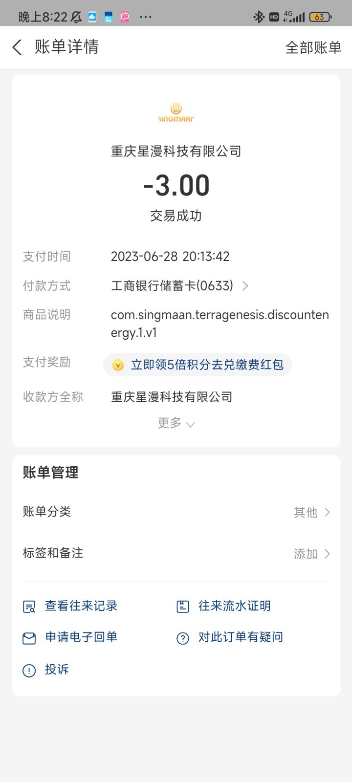 老老子在里面买一个限时礼包,就是三块钱给15能源的一个。用的是支付宝付款。付款之后能源并没有到游戏上。已经举报了。