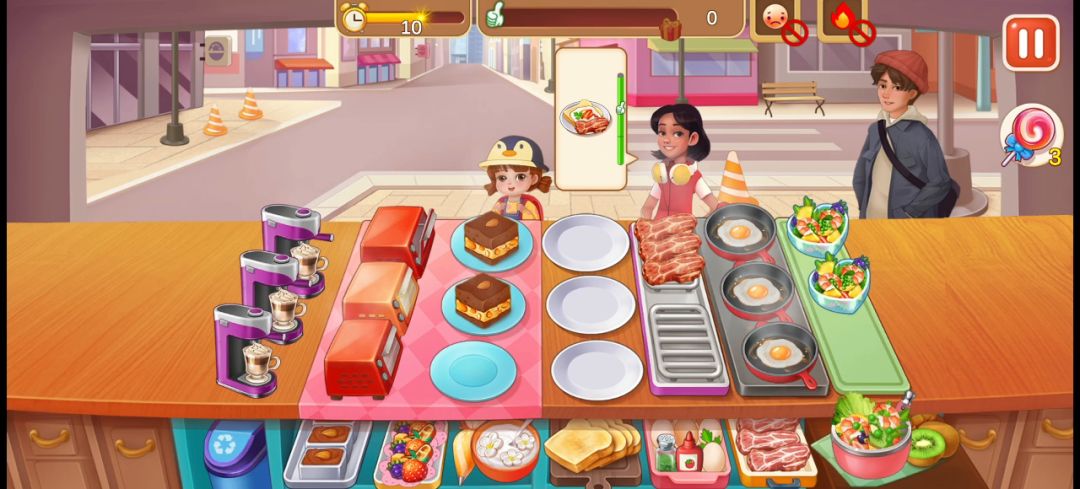 呜呜呜呜呜呜呜呜,回顾烧烤店异常简单的我竟然自不量力的挑战了糖画,真的太他娘的折磨了。 当初的我为了全三星就在这关磨蹭了很久,没想到现在的我还是在这关磨蹭了这么久。 但是非常神奇的这些手势我居然一个没忘,太神奇了,我还以为我会再回顾一下教程呢,虽然记得住手势也不会减少一点这关的难度。 这关的难点就在于!画糖画的时间太长了! 没错,比起点一点就不用管的棉花糖和糖葫芦,糖画需要你的手全程在场,一旦离开就不能进行糖画的制作,也不能进行批量生产,这是最大的难点。 第二个就是糖葫芦太多了,当它密集的出现会一下子打乱本来挺好的节奏,但是也还好,把最后的注主要意力放在糖葫芦上就好了。 第三这个棉花糖也跟糖葫芦属于是同一个战线的,需要添加糖果和保护膜,有一段时间的密集期,需要重点关注。不过现在的我已经进化出了单手操作一道菜的本事,所以完全不怕呢●‿●