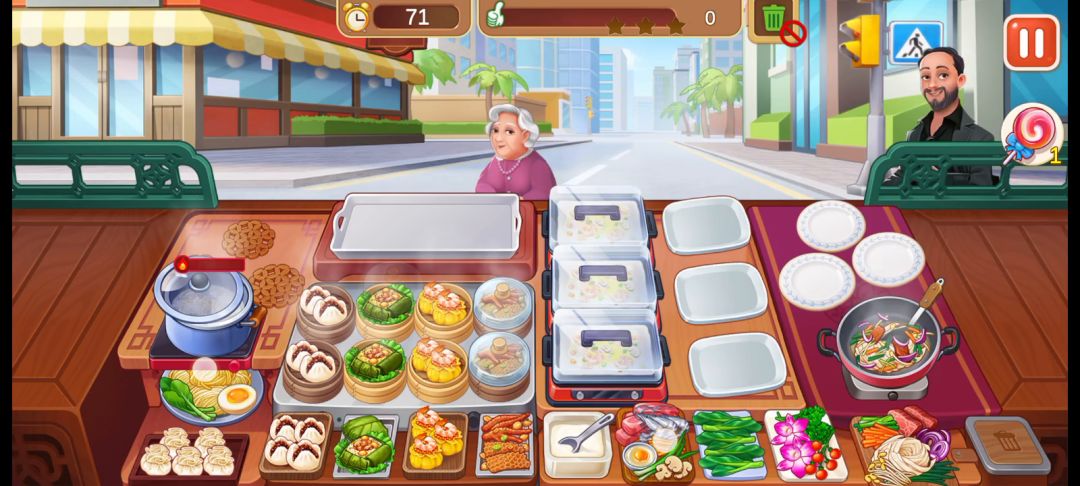 这关确实时间卡得比较紧,打了多次之后找到了诀窍。注意看最后几秒,把要上的菜提前做好,人来之后马上点。