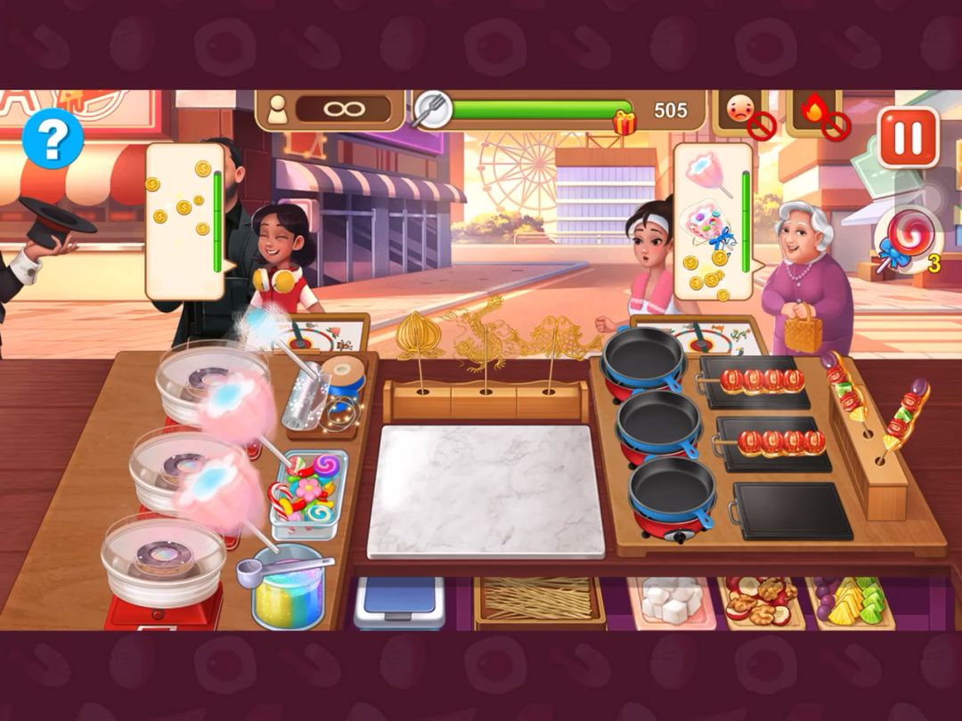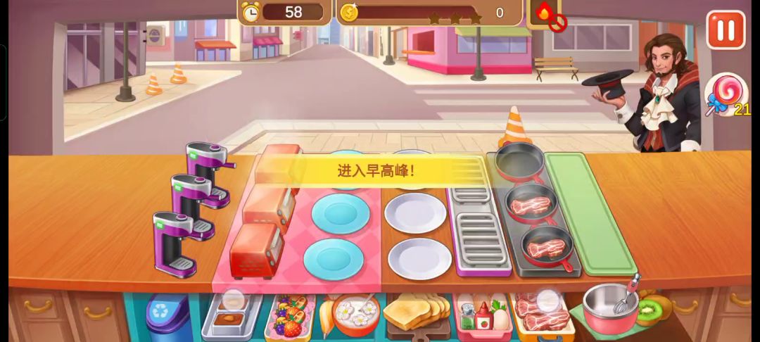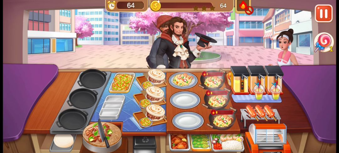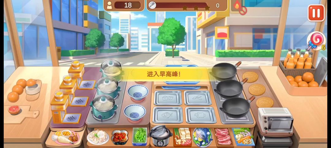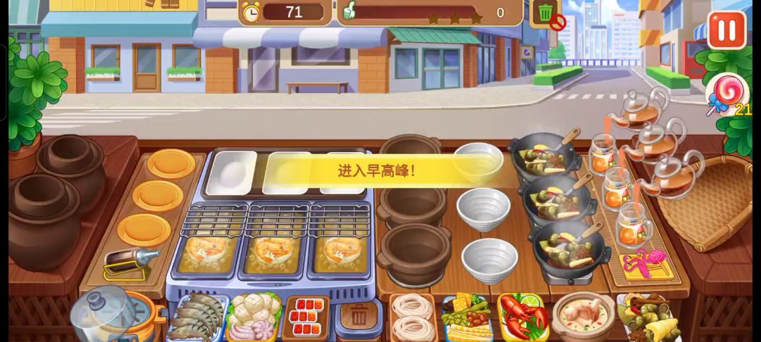 也算是圆了一个很久就想做的事,不过还是没办法一次性全过了,后面两关44.45都试了两次才过,于是我把失败的画面直接剪掉了,这样会显得我非常专业的样子(๑ºั╰╯ºั๑) 整个炒菜店要注意的也就是这些了,新手玩的时候还是可以记一下前面的几个菜单,以此来获得更多时间。 其实最右边的蒸蛋可以半放养,看见有客人点了就直接上菜,我现在上蒸蛋已经连眼睛都懒得看过去了,其实左边的饮料也差不多,但是饮料还得上奶油,所以还是得看一眼。 炒菜当初难倒我的地方就是他四个菜却只有三个锅,但是仔细看看也没什么,毕竟客人也不会四个菜一起点了(也不知道是什么癖好 所以客人点的菜刚好能让你三个三个的炒,就不用太烦恼还有一个菜装不下的问题。 然后,当初就是这个炒菜店,直接让我的手速飞速成神、加油啊新人们(ง •̀_•́)ง,熬过去就能发现自己的手速都变得不一样了,和过去的自己完全不同了呢。