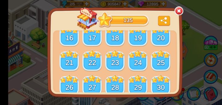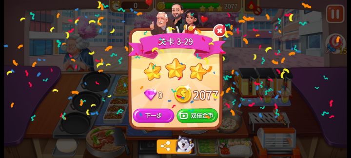 一共两次,第一次比较勉强,擦着边过的,第二次就熟练了。 其实对我来说还好,我比较难的地方就是炒菜店和烧烤店,其他的都很有意思,我尤其喜欢火锅,咕噜咕噜的声音特别治愈~ 这关需要注意的点 其实没有什么可注意的,烤箱一定要两个甜甜圈两个长面包一起烤,烧仙草两个都时候就可以开始做新一波的了 中间那个好像是蛋仔,我都没吃过加料的,我爱原味蛋仔,剩一个的时候就可以做新一波了。 我的习惯就是一波一波的做,不要刚卖掉两个又火急火燎的做新的,少量多次不行,达咩! 最好是把这一波全部卖完了再做新的!也可能是因为我有一点点的小强迫症,就喜欢整整齐齐的(所以炒菜店四个菜三个锅差点逼疯我) 总之,这关还是挺简单的,我下一个视频打算把烧烤店最后一关发上来(真的很难很绝望)(T▽T) 估计又要死磕半天了,心疼我的钻石