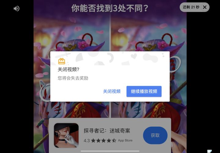 广告看完关不掉,就是右上角是大一点的白底黑叉的广告类型,没播完点击会跳出图1样式,无法进行下波操作,播完也不能点击叉叉回到游戏界面,只能游戏整个后台清掉,奖励也没有,我已经看了好几遍无果的广告了,受不了了😭,重新下载也没用,现在跳出的都是这个类型的广告,求问解决办法,设备iPad Air4