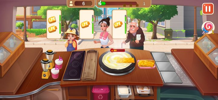体验感不错啊,老板和狗勾的对话真的好搞笑啊。希望快点升级解锁更多的美食,早高峰紧张急促的感觉真的很解压啊哈哈哈