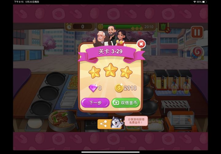 我觉得挑战赛的计时方式有点问题。顾客是要慢慢走到位置上才开始点单,这个时候已经开始计时了,但是刚开始还好,可以准备东西。但是我有好多次因为时间不够而结束比赛是因为时间还有好几秒,而上一批顾客已经走了,新一批顾客还在慢悠悠的准备走到位置上,只能眼睁睁看着时间流逝掉,玩得我挺烦躁的。