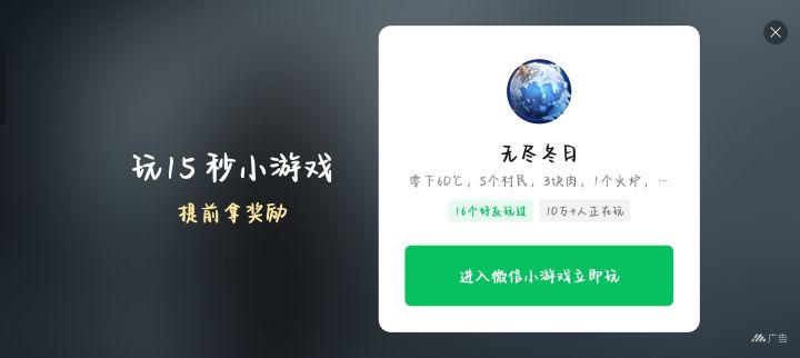 Rt,本来看广告刷金币呢,全是小游戏广告也没什么,但点完回来好歹给我一个❌的地方啊。被迫大退重进然后发现重进的不算双倍,来回几次我真的会裂开