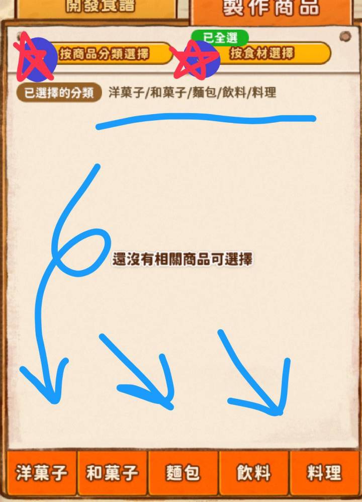 有些回應不知道為什麼沒辦法放圖(‘~` ;;)所以在這邊開一個帖,來講關於新開局搜尋常見的盲點:·有時候開啟選單,會覺得「分類都開了,怎麼還是沒東西」,但其實「已選擇的分類」如圖所示,是淺藍色箭頭指的下方分類;有時候是預設把全選取消掉了,有時候是系統排序的問題,目前似乎在選完食材後,烹調方法的勾會被還原成之前的選擇。(例如:一開始只選「冷凍」、「小麥粉」的狀態,之後「選擇:全部烹