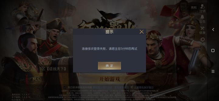 本来就没指望游戏有多好玩,腾讯游戏嘛,也就那个样子,只是想着试试水玩两天的玩法还行的话就多玩一阵子……结果,两分钟就不让我玩了,注意重点是他不让我玩~这我能怎么办?英雄人物都没了,我还怎么玩?恭喜你成功劝退我