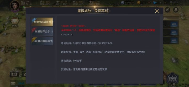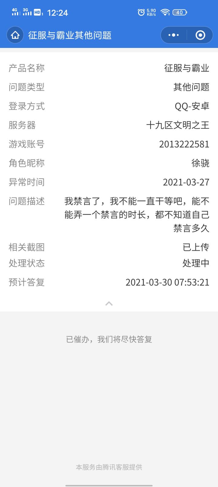 君主大人请按照以下格式反馈,方便整理提交并尽快修复呢,感谢您的支持!出生洲:寒鸦州问题发生时间:3月29日登录方式:微信手机系统:安卓系统对应区服:31区叱咤风云账号:手机型号:18684157415角色昵称:龍門角色ID:1003102969问题描述:营帐无法升级,无法移动,无法取消问题发生地坐标:2191,1286问题截图:哦豁,这个游戏bug好严重,无法再起了,这都好