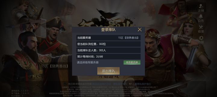 在下是Q服15线的玩家,今日下午12点开始联盟里一半的玩家登入不了游戏,显示排队导致我们开成进度推迟。一下午官方一点反应都没有。再者我们服务器征战天下三天了还没开启最后这种不是让大佬爽的游戏出货率可以调一调了,毒奶粉百分之一的卷我都成功过你这橙的百分之六就基本只有保底吗?而且把这保底换成必得五星好吧,今天差3次就保底你直接给我出了重置了。最后祝这游戏越来越好。
