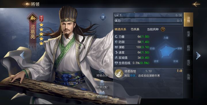 当我们在搭配阵容时,往往需要确定队伍中输出将领的数量,而C位的数量和增益技能的数量成反比,所以双核队伍的搭配难度要比单核阵容更高。S3新将领卫青在这方面却拥有得天独厚的优势!一、【将领解析】卫青是九州阵营新增的一名7统核心,他拥有非常全面的防御、谋略、速度成长,力量成长高达2.8,几乎是面板无缺陷的完美将领,之所以称其为力量天花板,是因为他的自带技能可在实战中为群体2人提供高额的力量加成,正是