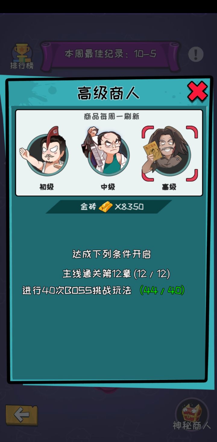 BOOS挑战高级商人无法解锁啊!