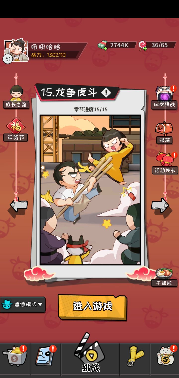 战力一百三,普通通关了。赶紧出新关卡啊。