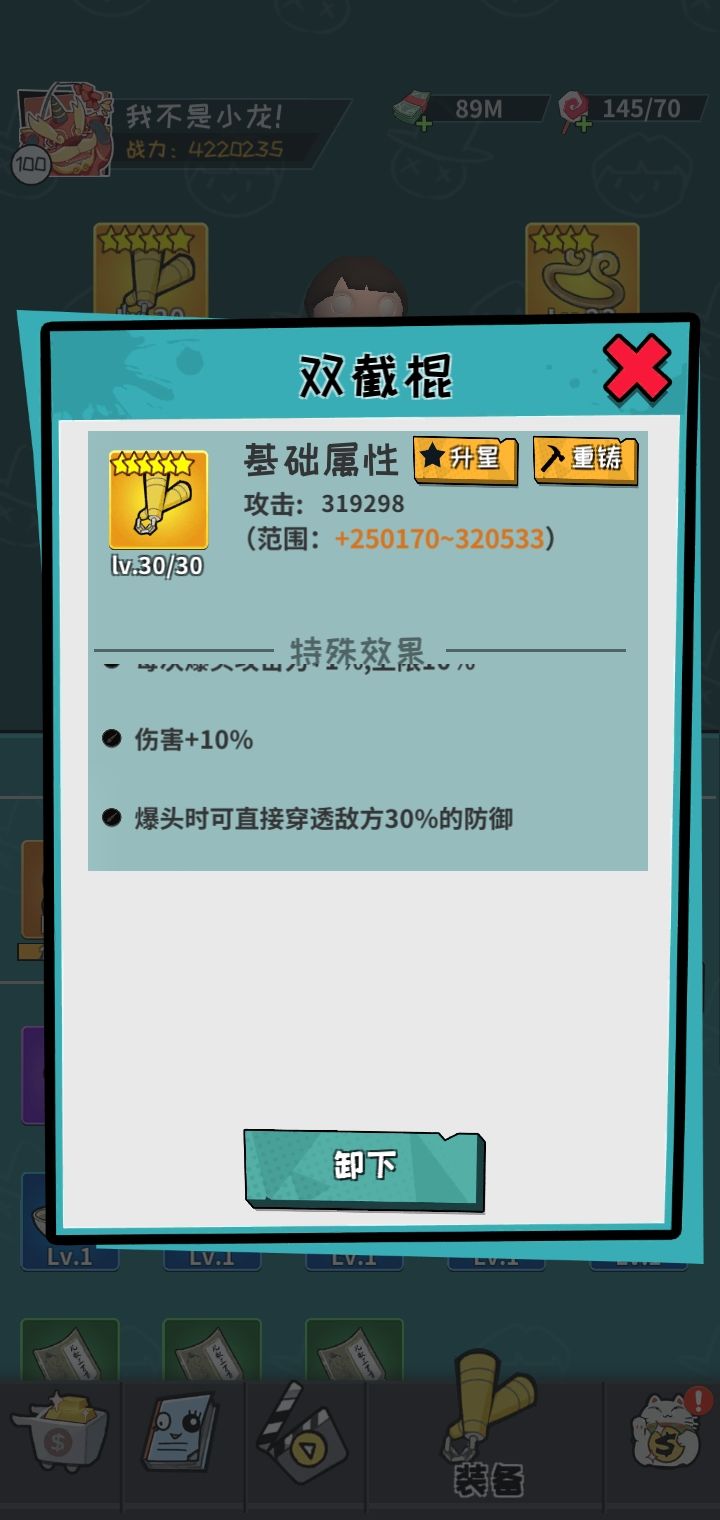 快点加强双截棍吧,同样都是金色品质,满级,满星,差别很大,希望双截棍可以双持,李小龙也耍过两个双截棍