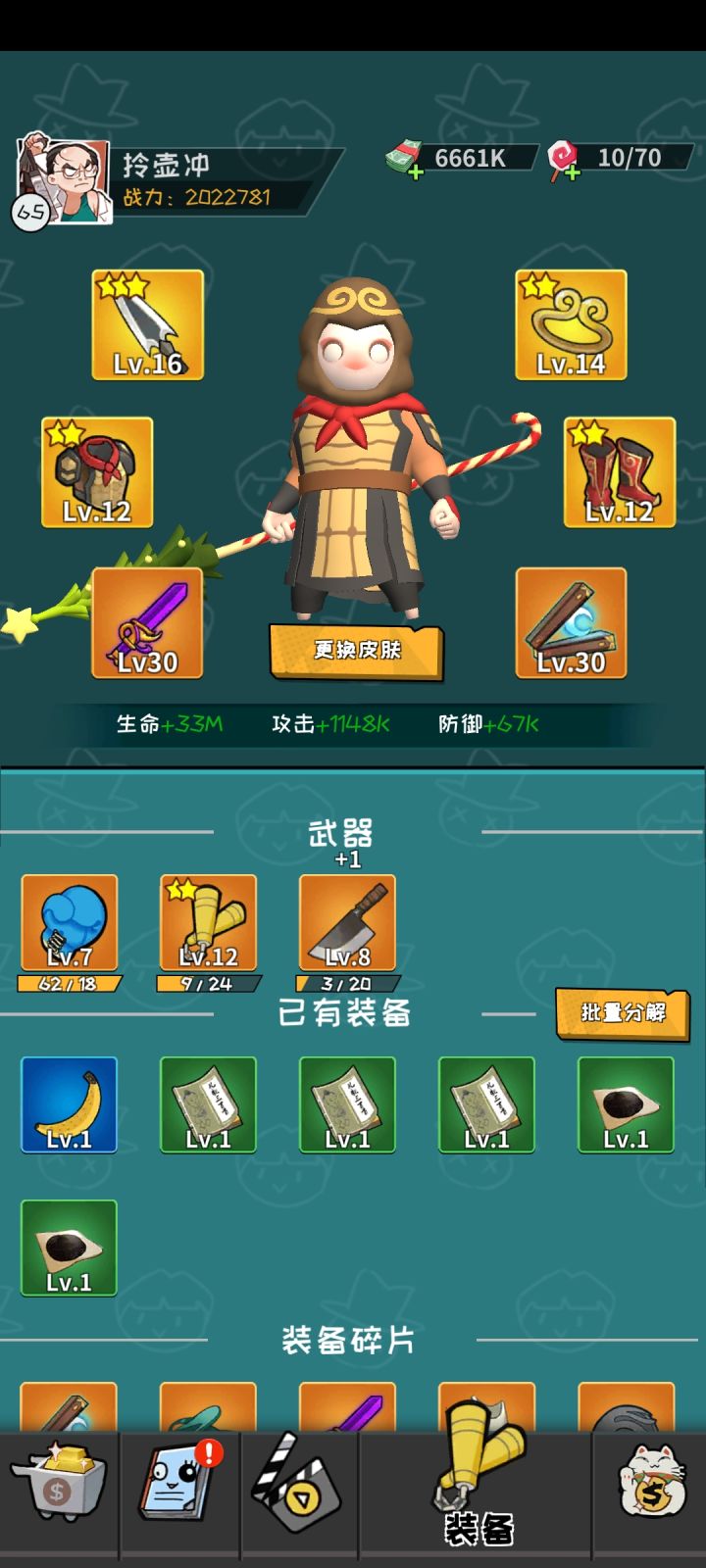 希望分解能改为“全部分解”,20个分解很慢,玩家为了分解饰品这个微不足道的需求就很耗费时间。分解饰品所看的广告也就几个,不差那几个广告,应该把广告放在更为重要的地方;钞票获取和打工报酬在后期显的微不足道,也就没人总是看广告来获取额外奖励;百变小卖部箱子的5次奖励不应该有冷却时间;活动商店奖励有兑换上限并且较鸡肋,兑换完后就没兴趣打了;boss战的额外秘籍我估计也没人选。翻牌奖励应该放在通关结算。皮肤属性机制建议改为每得到一款皮肤就会有永久属性加成。
