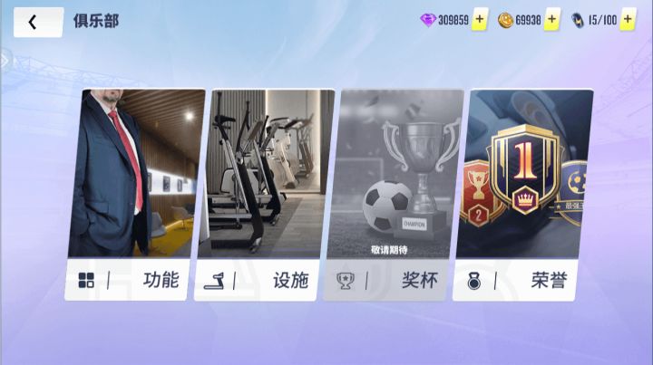球场风云里面,每个俱乐部有一个功能(功能性设置)、一个俱乐部设施(增加全队属性数值)、一个奖杯(还没做好吧)、一个荣誉(增加全队属性百分比)。进入功能设置里面,有三位大佬。技术顾问(累计充值60元或者通关第五章赠送),主线比赛开始就可以立马跳过,可以避免冗长的比赛时间,加速发育哈。投资经理(累计充值198送),转会市场每天的金币分红翻倍送给你。足协联络官(累计充值328送),转会市场卖出球员的手