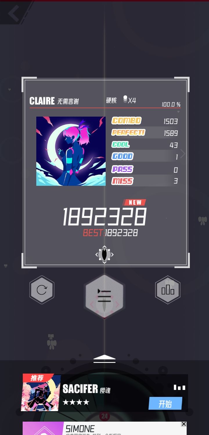 你看这个 无需言谢对吧 它这是真的不难 纯耐力谱,曲包里唯一一个能高倍速二指的,前期尽量稳住不爆G,1k的时候注意就行,尤其是尾杀那个烤串(chr的锅)(别问,要出教程也只出爱之失的