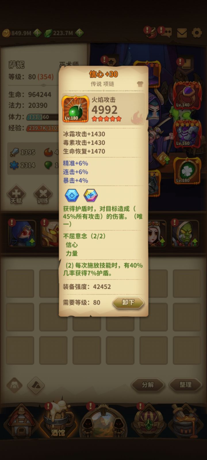 核心装信心力量共鸣,堆盾强度很高,神罚实测不好用,主力依然是女巫和元素。