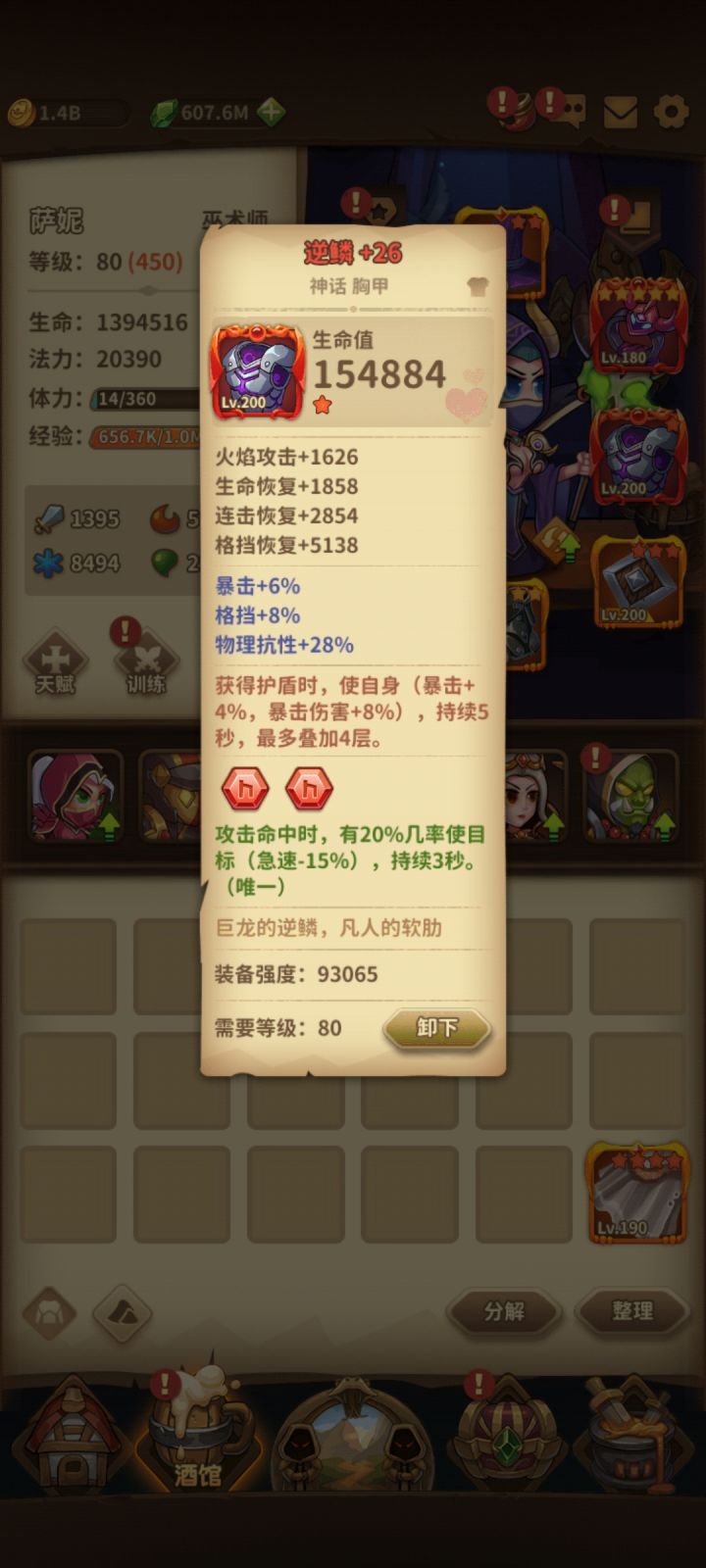 六职业毕业出装(6—4) (内容可在视频后面截图) 英雄:吉娜 出装:①衣服鲜血之拥② 武器鬼切 ③副手魔龙之心④ 项链海洋之心 ⑤鞋子振奋 ⑥帽子维拉之赐⑦手套贪婪之爪⑧戒指巫师之戒 专精选择:白热 开天 巫师之书 熔岩皮肤 属性 主火生命 面板 精准:面板23+符文10=33 暴击:面板54+开天15 +鬼切15+符文10=94 (暴击是基础尽量达到100~106) 韧性:面板38+符文孔4=42 急速:面板32+振奋30+符文24+白热15=101 连击:面板23+鬼切15+巫师套装45+符文8=91 符文 6~12暴 4韧 1~3命中 剩下连击>攻击 ①施法加急速 ②攻击连击 ③护盾造成伤害④暴击回血 ⑤连击精准⑥ 暴击加急速 ⑦暴击加暴击⑧护盾回血 天赋 (视频后面可截图) 地狱25关 平均2分钟