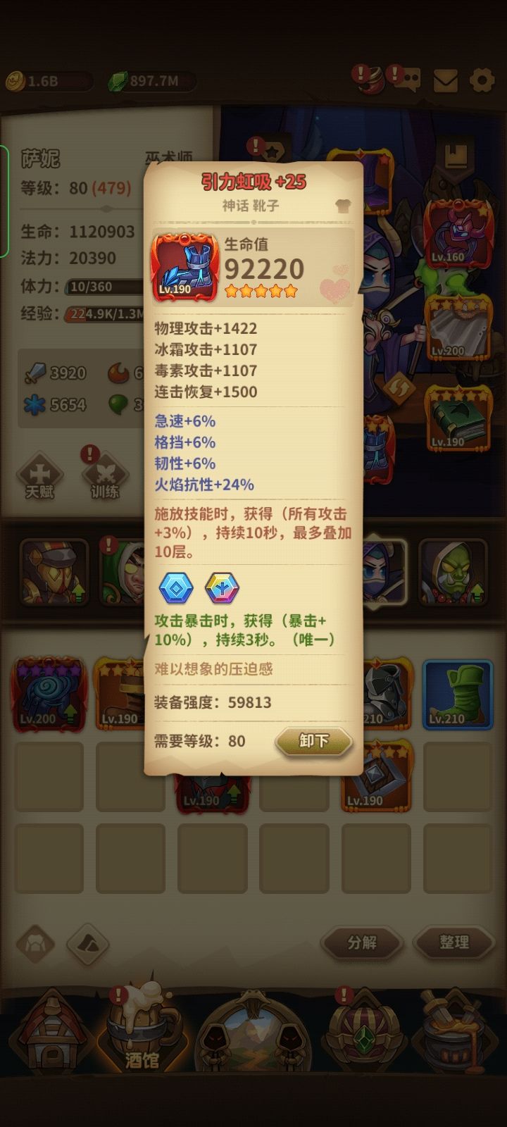 总结:我是前期不怎么会玩浪费大量资源在审判身上每10级就去更新装备。