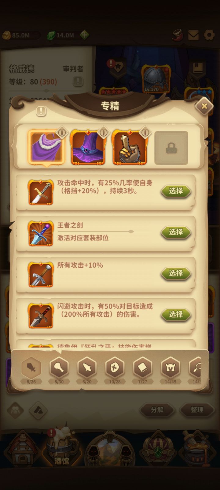 【V1.9.7攻略】本人跟着大佬学的格挡反伤盾,主修审判者,80级以前角斗士+公正套可以快速升级,过完80级大家赶紧爬塔提升装备等级和开专精,不用急着开角色,你也养不过来,专心一到两个角色,后期打不动了再培养其他角色,也算是增加游戏乐趣,游戏的玩法很多,我一开始走的是暴击+连击疾速,中期就发现走不通了,怪物属性太高,那血量哗哗往下掉,暴击叠盾也跟不上,所以审判者的格挡很重要,天赋点和装备搭配我是自己改了一点,因为爬塔有时候会时间不够,我加了一部分暴击疾速,目前爬塔2200不到,通关卡在了地狱10,也在考虑如何换装+搭配专精,还有一个小知识点,格挡大概到80%就已经满了,但是角色的格挡最好到100%--110%,因为要扣除怪物自身的精准,如果刚好到80%,怪物的精准度会降低角色的格挡成功率。