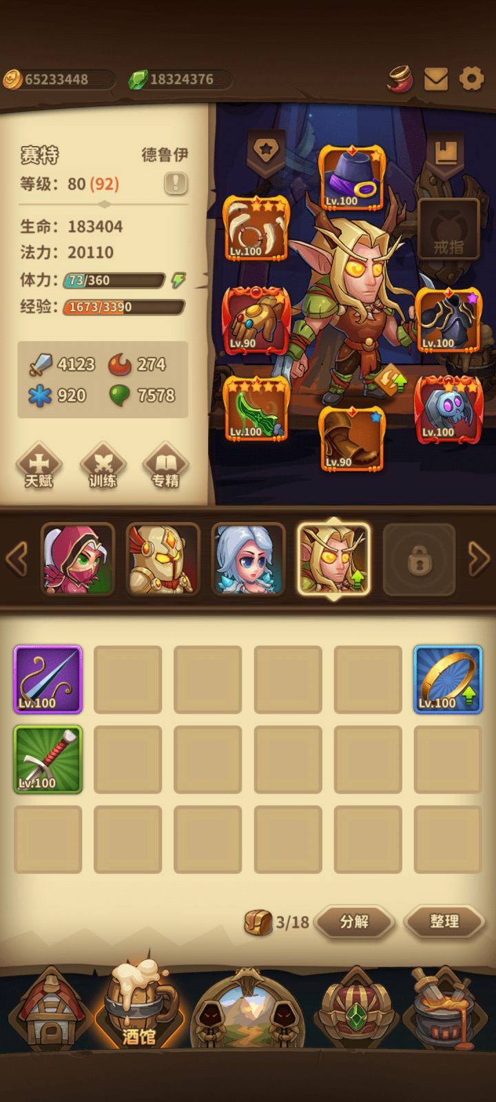 之前抽到神话副手凝神,就在考虑该怎么用,然后想到了远古套装,两个一搭配,神了。再加上幽影衣服……用这个套路,很长一段时间都是挂机过的这个套路最大的好处就是装备好弄,只有凝神是必须的,远古可以合成,其他装备都可以换(我项链还是冰属性的),重点就是三个:提高全属性攻击,提高连击,提高自保能力,现在已经1530多层了。而且,德鲁伊体力没了,可以换给刺客继续爬塔,刺客稍微弱一点,感觉是生命更少的原因